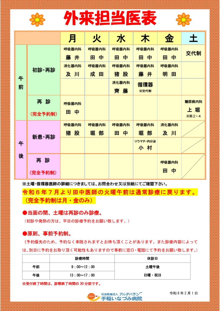 外来担当医表