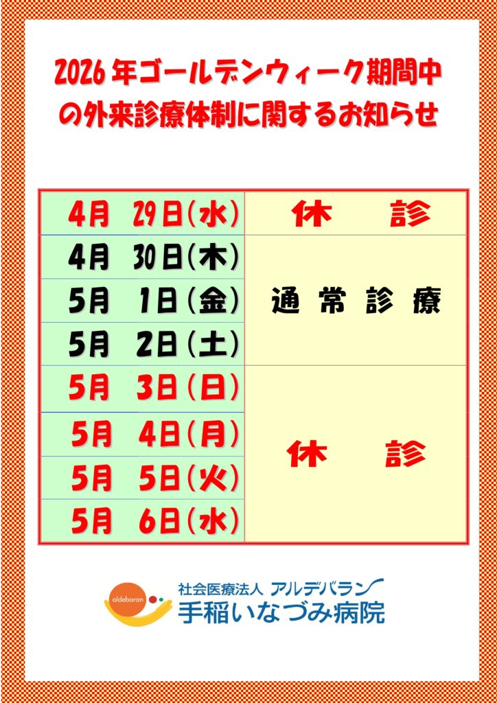 2025年ゴールデンウィーク期間中 の外来診療体制に関するお知らせ